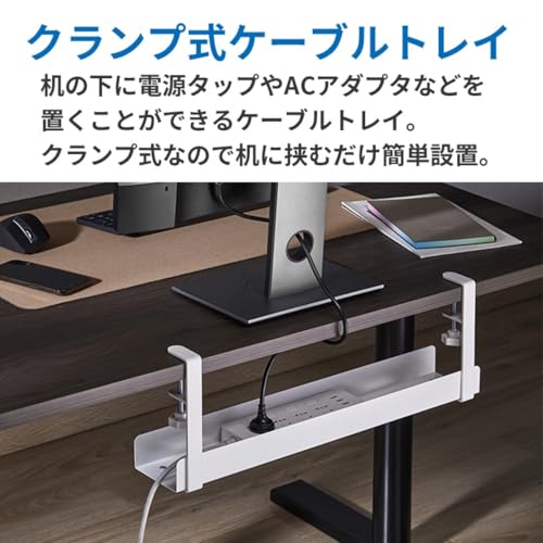 期待通りすっきりと格納できたので大満足です。自分の天板は140cmで穴が空いているタイプですが、やや幅の広いこのトレーが穴の近くにうまく来てくれるので相性が良いと思います。